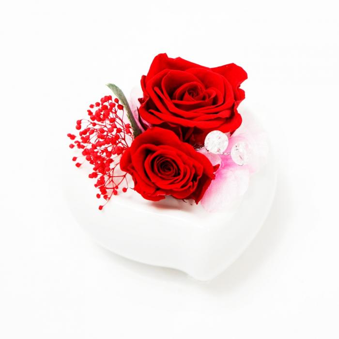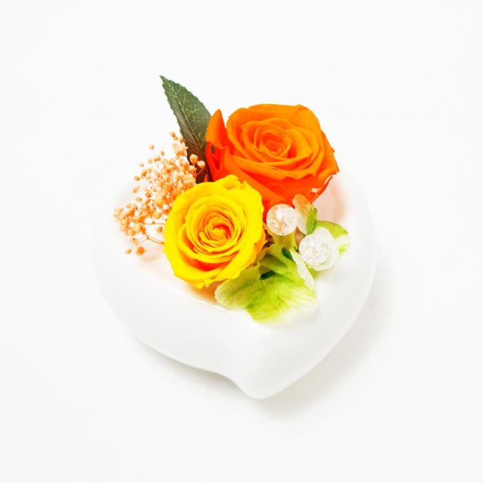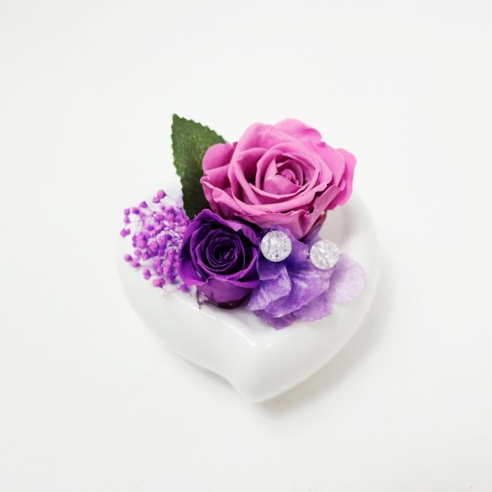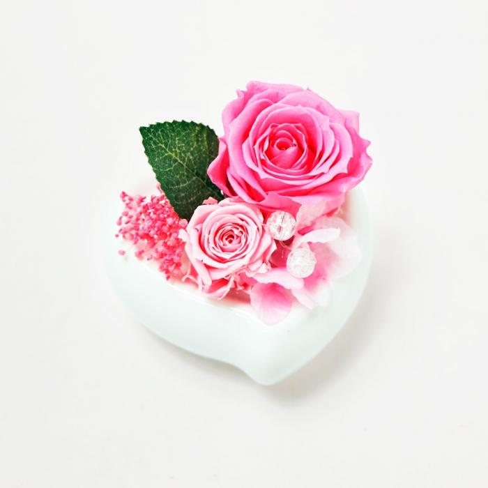 コロンとしたハート型の陶器の可愛いアレンジ。