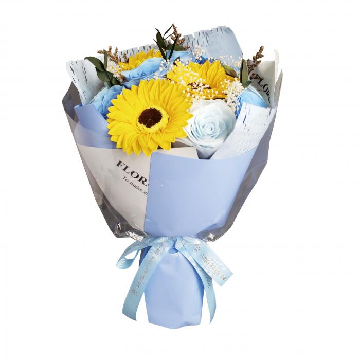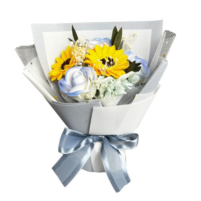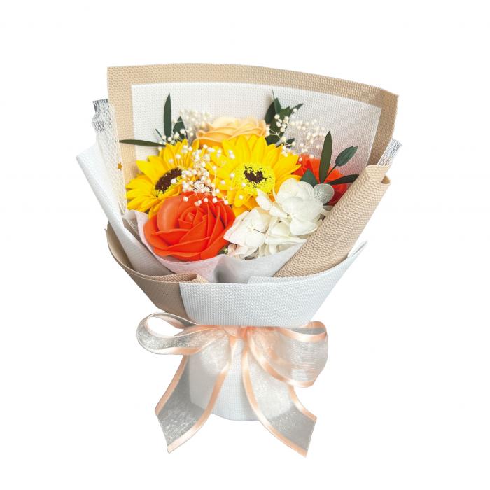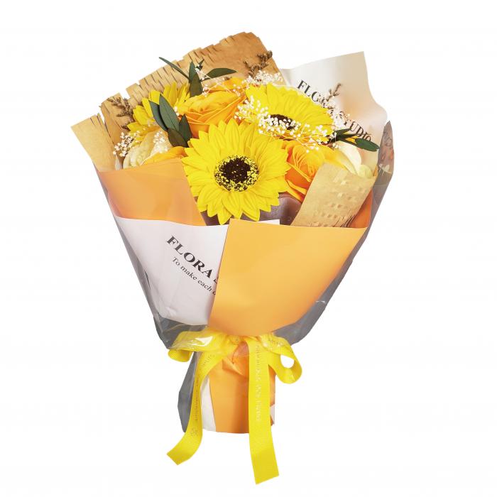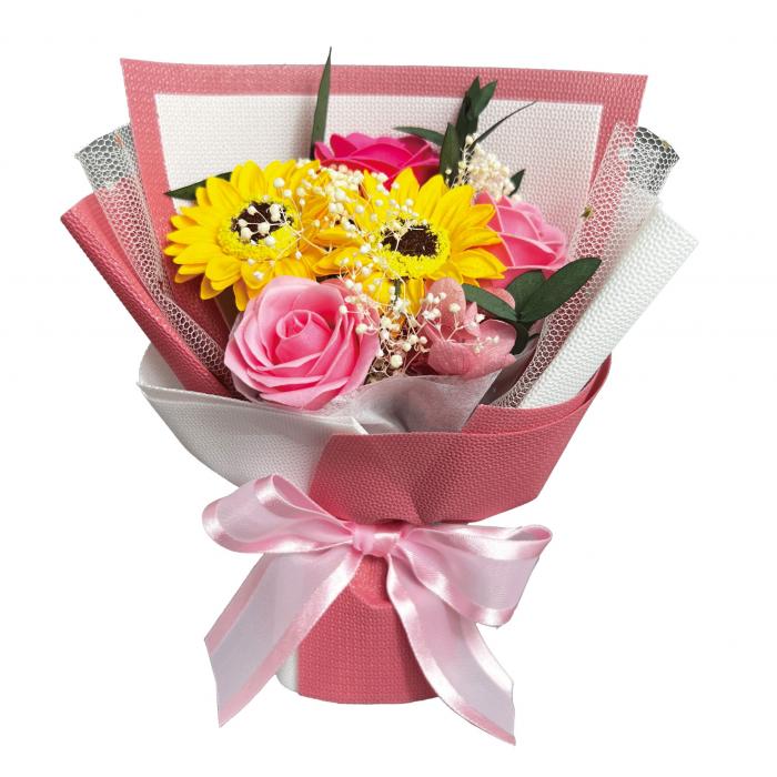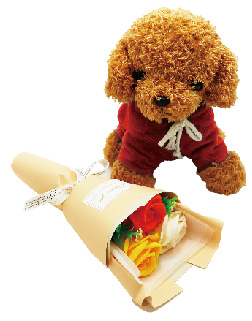 可愛らしいサイズのブーケ。手提げ袋付き