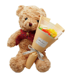 人気のフェアリー3輪ブーケとの組み合わせはプレゼントにぴったり!!