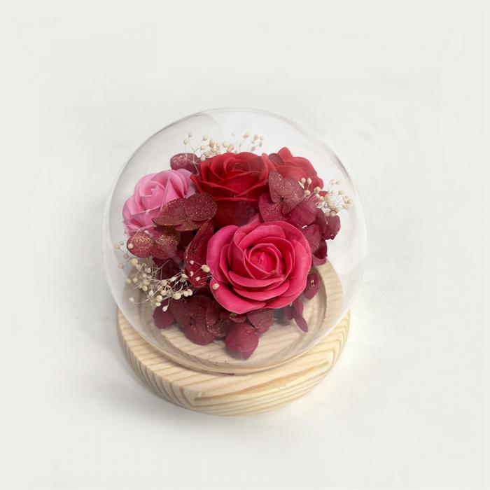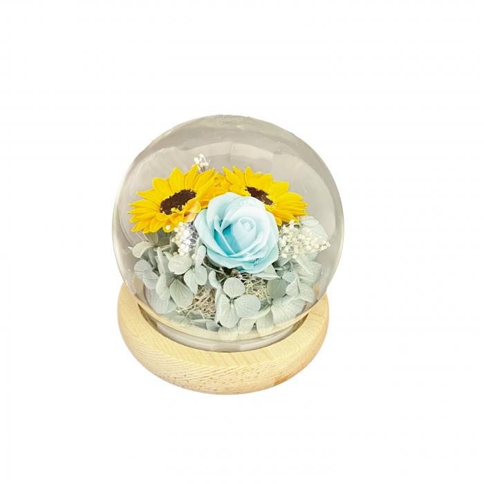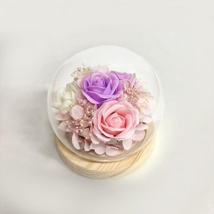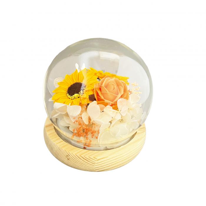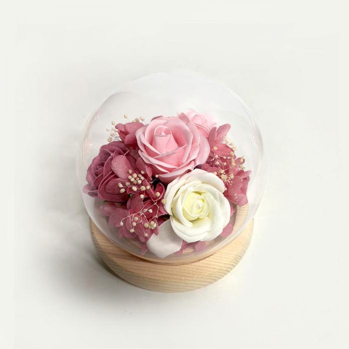 ドームの中に華やかなお花をアレンジしました。